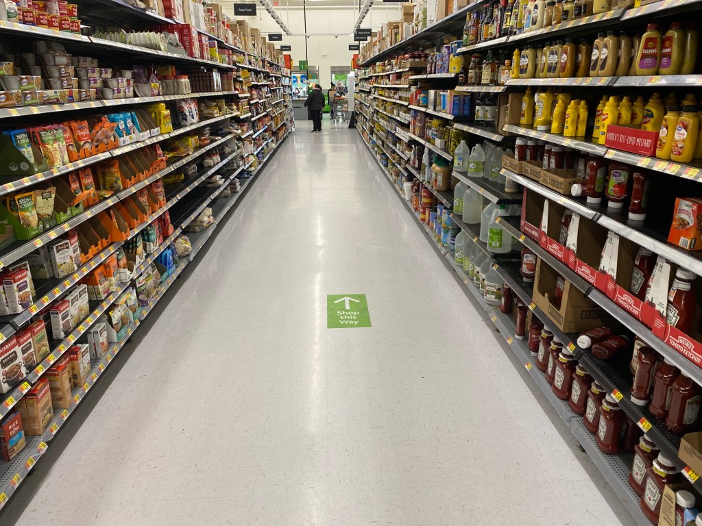 In every aisle, Walmart has signs indicating which side you may enter from.